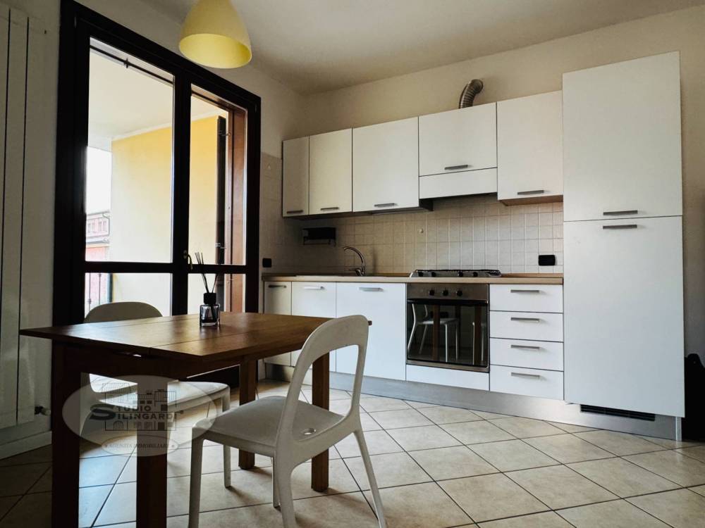 Al piano secondo con ascensore , composto da: ingresso in pranzo soggiorno con angolo cottura , disimpegno notte , camera matrimoniale , bagno e loggia coperta; garage al piano interrato.