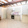 Lingresso si apre sulla zona giorno al piano terra, caratterizzata da travi in legno a vista che donano calore e un piacevole stile rustico allambiente. La cucina è a vista e ben organizzata; dalla zona giorno si accede direttamente al giardino esclusivo, perfetto come spazio esterno privato.