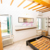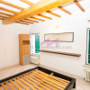 Una scala interna conduce al piano primo, dove si sviluppano la camera da letto matrimoniale, anchessa con travi a vista, e il bagno finestrato completo di box doccia.