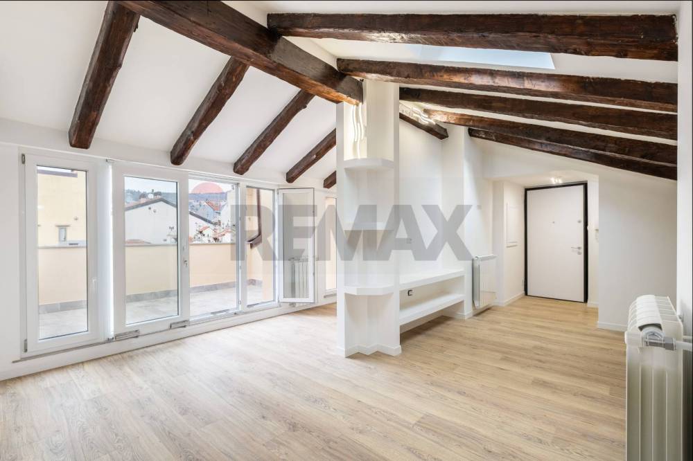 Proponiamo un elegante appartamento di 115 m² complessivi, di cui mq 102 di appartamento e mq 13 di terrazza a vasca, situato al quarto piano senza ascensore, caratterizzato da splendide travi a vista e da uneccellente luminosità.