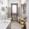 Il disimpegno conduce alle due camere e al bagno, dotato di vasca e sanitari sospesi.