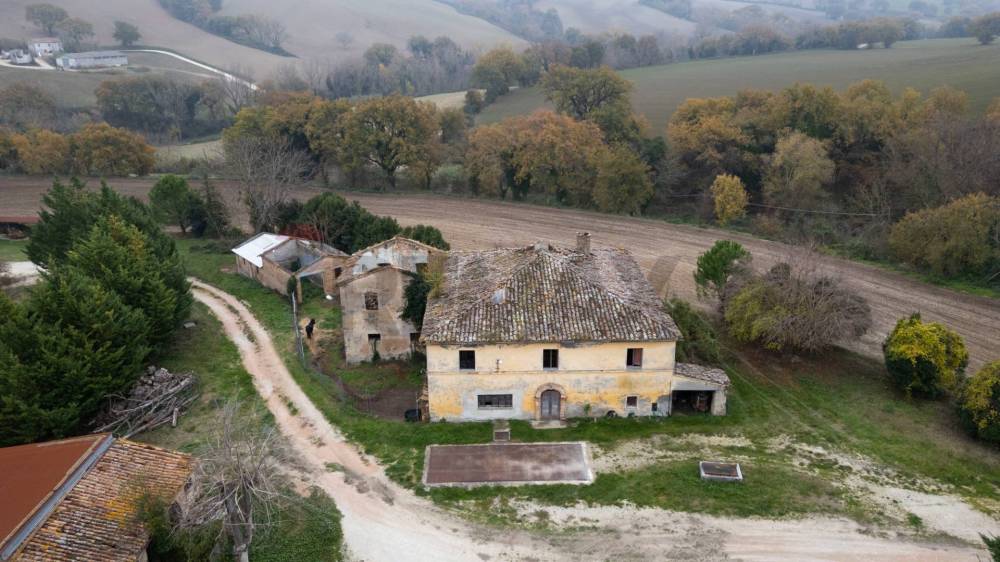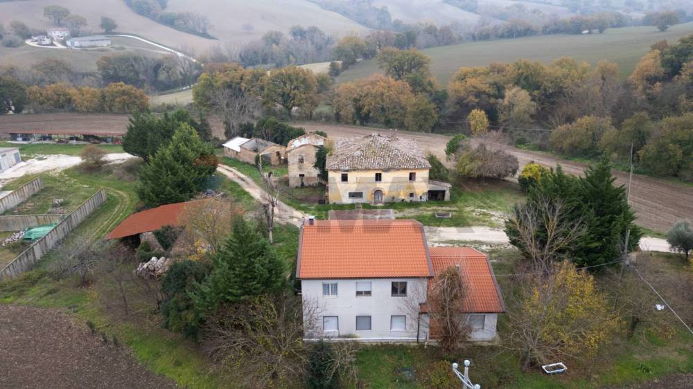 INTERO COMPENDIO IMMOBILIARE FORMATO DA CAPANNONI INDUSTRIALI, IMMOBILI RESIDENZIALI, CASA COLONICA E TERRENI AGRICOLI IN VENDITA TRA ARCEVIA E COLLE APRICO.