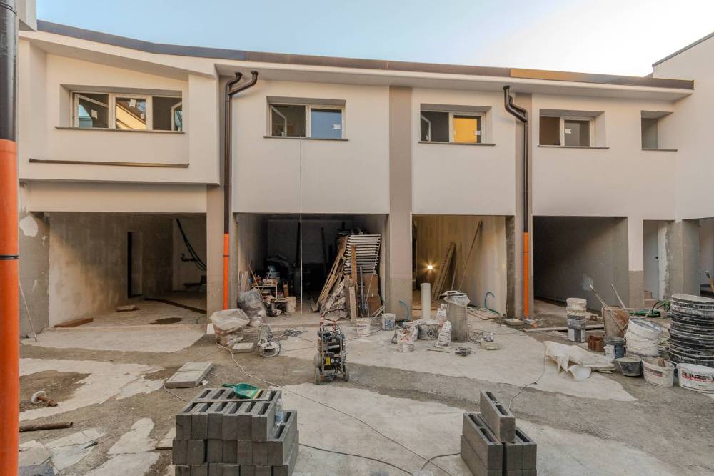 Appartamento 1: Trilocale indipendente cielo-terra su due livelli. Al piano terra troviamo: ingresso su zona giorno che si affaccia su cortile privato, bagno di servizio con anti-bagno e ampia cucina finestrata; al piano primo: corpo scala con sbarco su disimpegno notte, camera singola, bagno, ampia zona notte matrimoniale con cabina armadio. Possibilità di cantina ed ampio box di mq 23,30 ad 27.000,00.