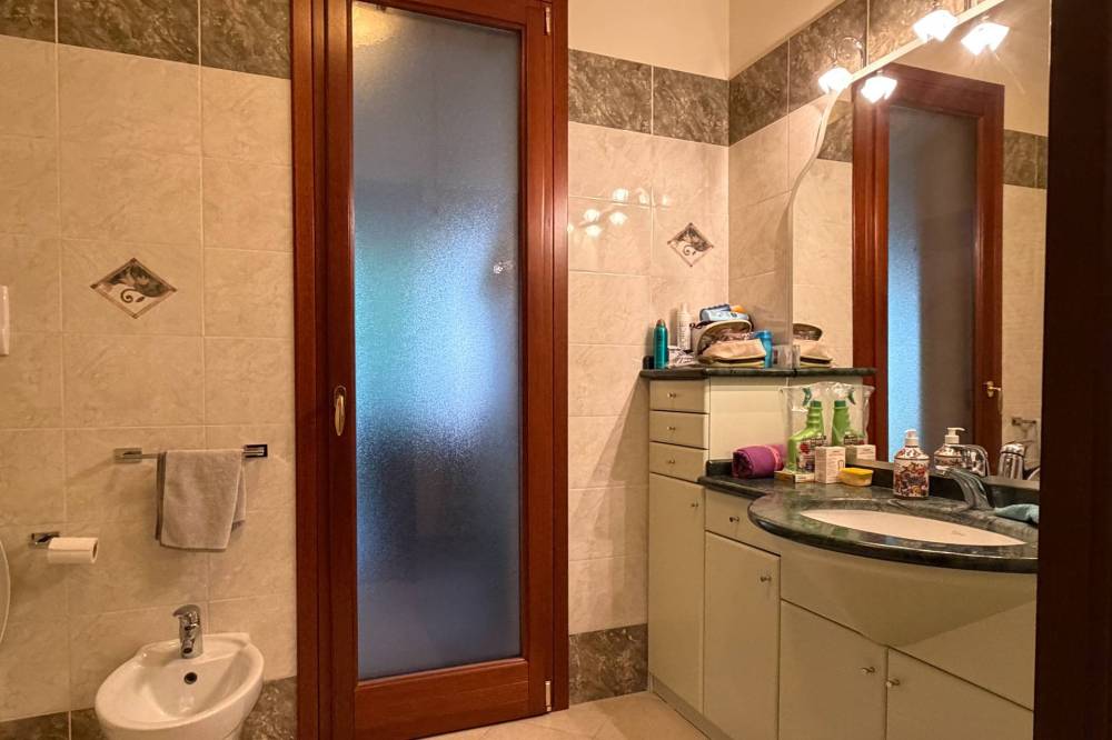 Il piano primo, raggiungibile sia tramite una comoda scala interna che da una scala esterna, è suddiviso in: ingresso su ampio salone con camino, cucina che si affaccia sul portico comodo e spazioso nel retro della villa e circondato da giardino dotato di irrigazione, un disimpegno, ripostiglio, bagno ed una scala che dal soggiorno conduce al livello superiore in cui troviamo una camera grande un bagno un disimpegno ed altre due vani adibiti a mansarda ma che godono di una dimensione ed altezza tali da poter essere usati come comode camere.