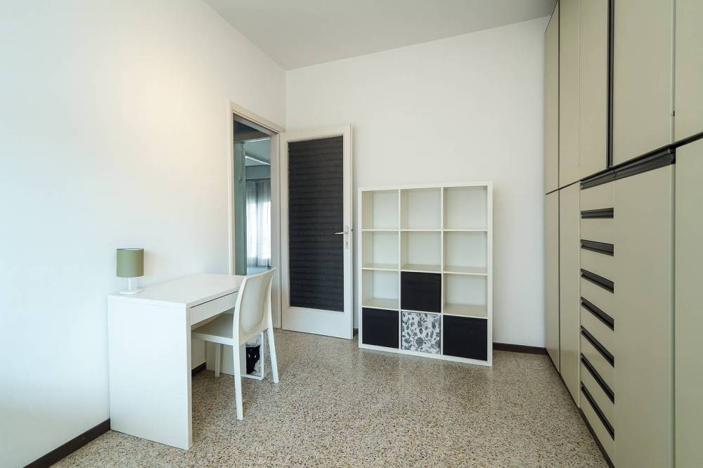 Si trova al secondo piano di una piccola palazzina senza ascensore, in un contesto tranquillo. L’ingresso si apre su un pratico disimpegno che conduce alla cucina abitabile e poi al soggiorno con uscita sul balcone con vista sul verde.