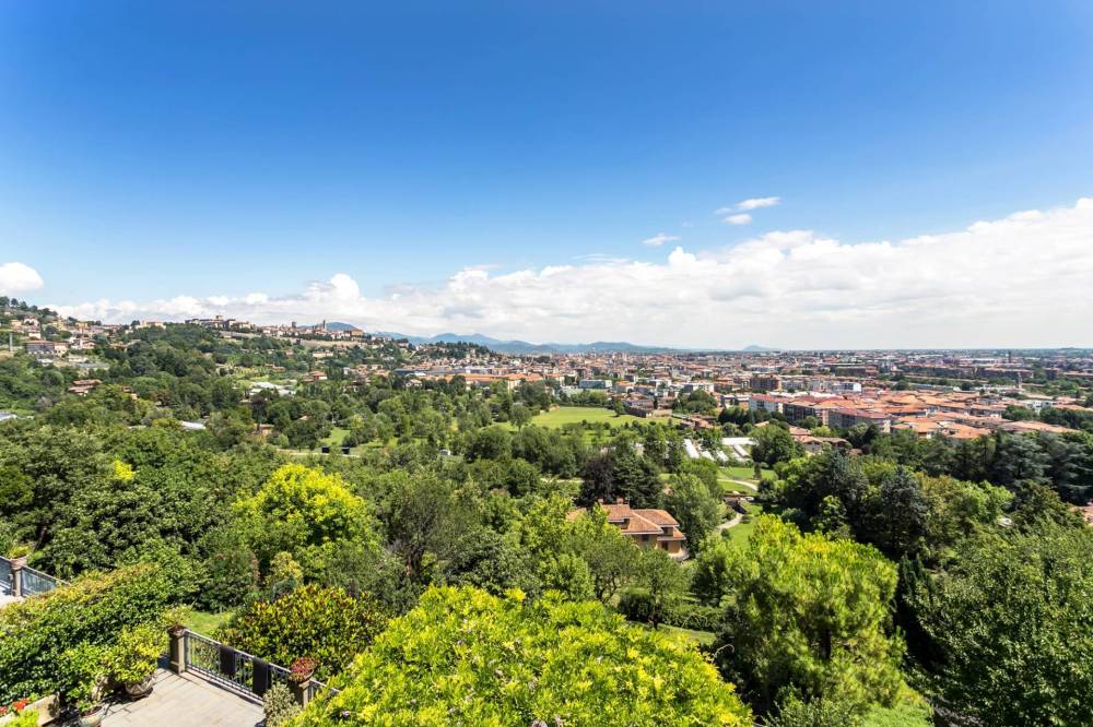 Nel cuore più elegante e ricercato di Città Alta proponiamo una residenza indipendente di altissimo pregio, sviluppata su più livelli e impreziosita da una vista panoramica unica sullintero skyline di Bergamo. Un immobile raro, pensato per chi ricerca esclusività, privacy e comfort di livello superiore. Lingresso conduce a unarea notte raffinata e silenziosa composta da un elegante disimpegno notte, una suite padronale di ampia metratura, dotata di camino funzionante, cabina armadio e bagno con vasca, doccia e finiture di pregio. Sono presenti inoltre due camere da letto servite da un bagno condiviso e una camera con bagno privato. La zona giorno si apre su un luminoso soggiorno di rappresentanza, arricchito da tre balconcini panoramici con affaccio suggestivo su Città Alta e sulla città bassa. Sullo stesso livello troviamo una cucina abitabile curata e funzionale, una stanza studio con bagno dedicato, ideale come area lavoro o ambiente riservato per gli ospiti e lavanderia. Contesto storico di prestigio, vista scenografica irripetibile, completa indipendenza, ambienti eleganti, finiture ricercate, dettagli architettonici unici. Una dimora ideale come residenza principale o abitazione di rappresentanza. Possibilità di acquistare un box.