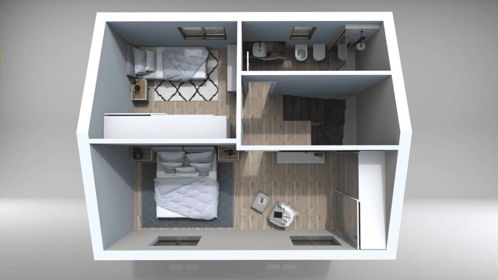 La proposta qui descritta riguarda una villetta doppia, con possibilità di averla singola, unirne tre o acquistare lintero complesso.