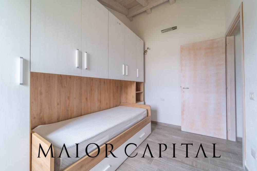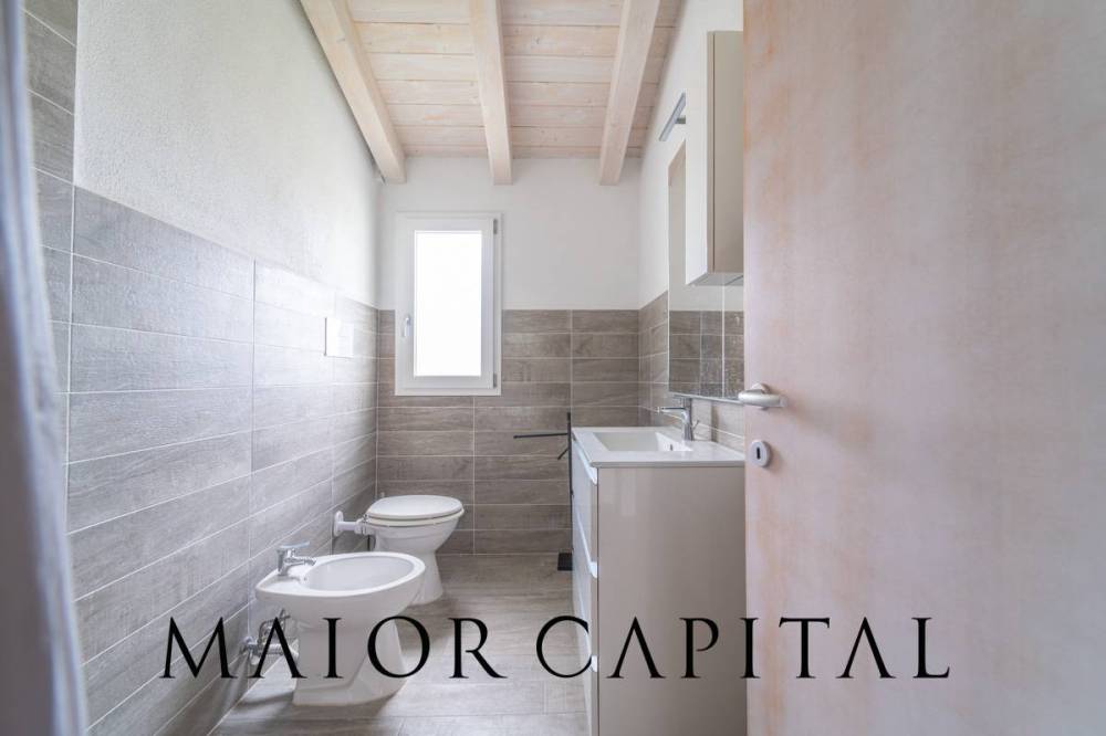 Laccesso allappartamento avviene tramite una comoda veranda coperta e vivibile, ideale per pranzi allaperto o momenti di relax. Gli interni, moderni e ben curati, si aprono su un luminoso soggiorno con angolo cottura, valorizzato da soffitti con travi a vista dai toni chiari, che donano freschezza e accoglienza allambiente. La zona notte comprende due camere da letto, una matrimoniale e una singola, facilmente adattabile anche a doppia con letto a cassettone o a castello. Completa il piano un bagno finestrato con doccia, funzionale e ben rifinito.