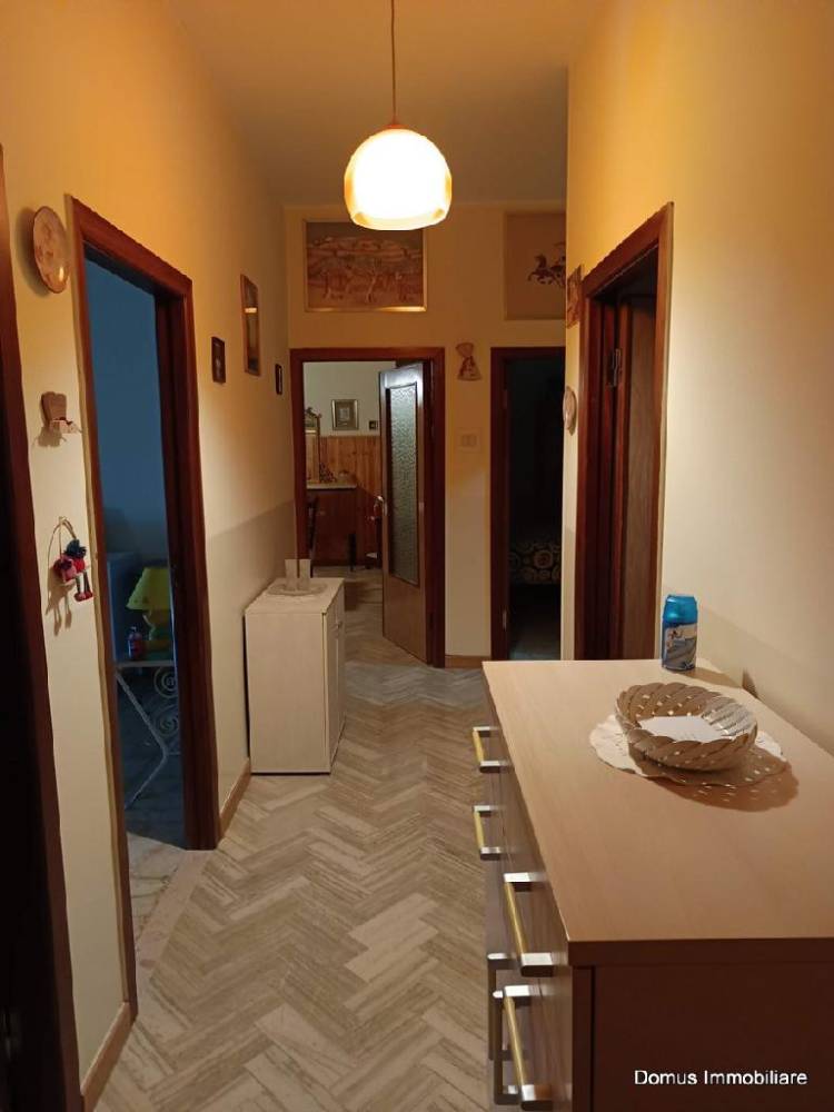 Appartamento in discrete condizioni generali, con finiture dell'epoca di costruzione (fine anni sessanta) posto al secondo piano è composto da ingresso, cucina, sala, due camere matrimoniali , una singola, un bagno, cinque piccoli balconi a servizio di ogni stanza. Completano l'offerta un fondaco al piano interrato, un garage al piano terra ed un orto di mq 85.