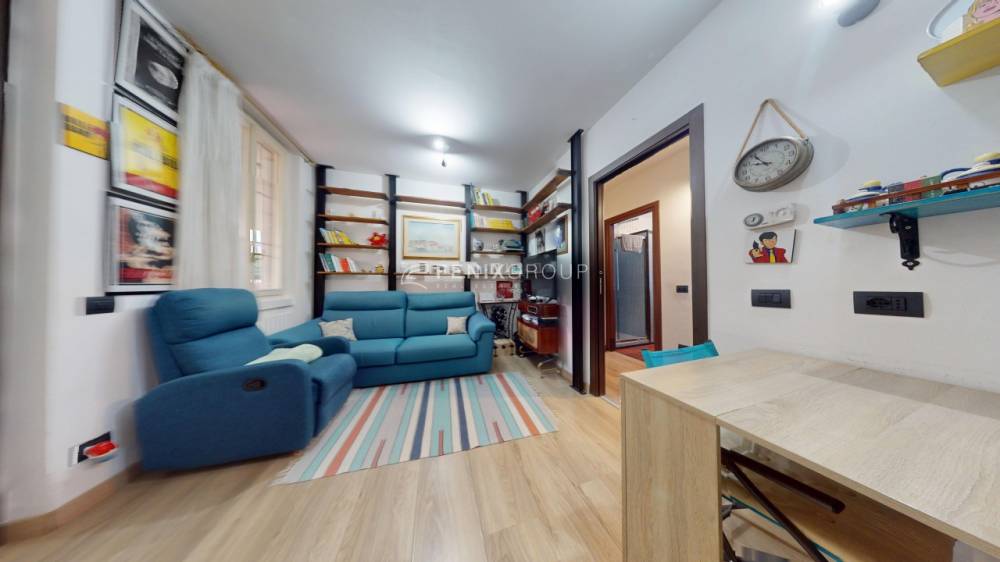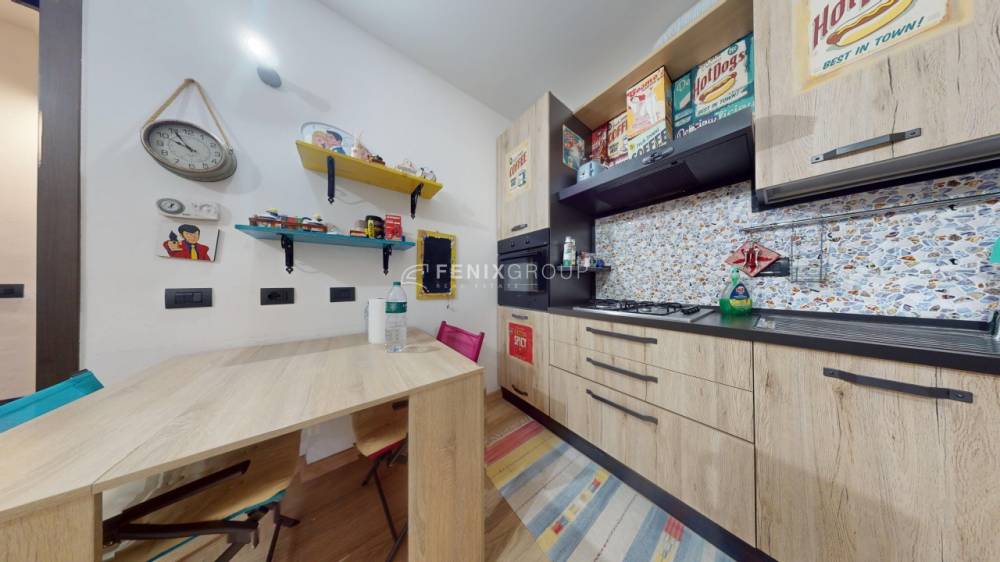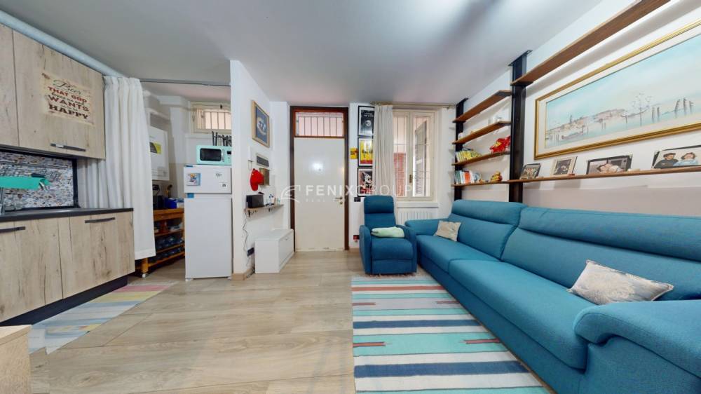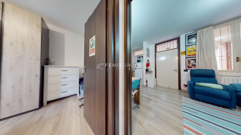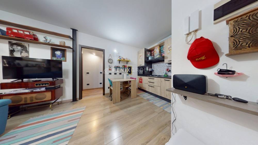 L’appartamento si presenta con il soggiorno condiviso con l'angolo cottura e attraversando il disimpegno si accede al bagno e la camera matrimoniale.