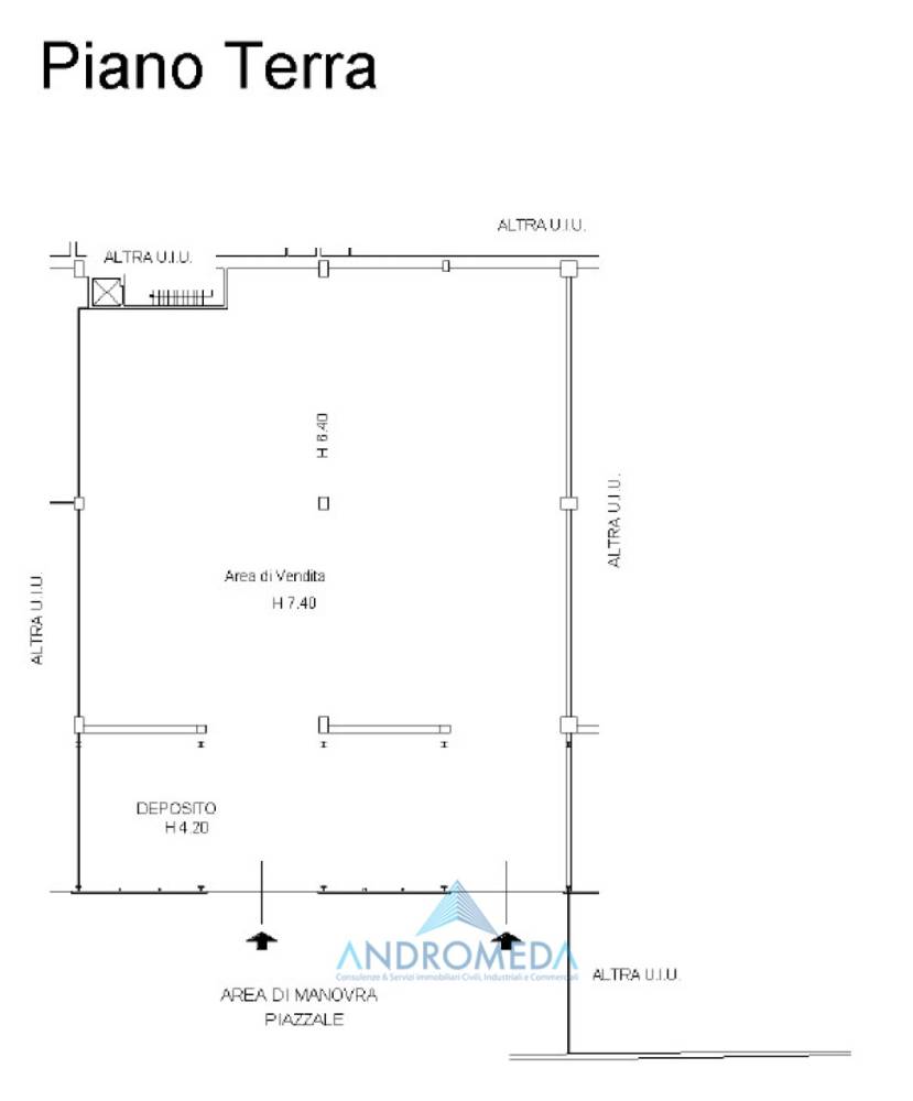 L’immobile presenta un’altezza di mt 7,40 al colmo e mt 6,80 sotto trave, caratteristiche ideali per diverse attività produttive e commerciali.