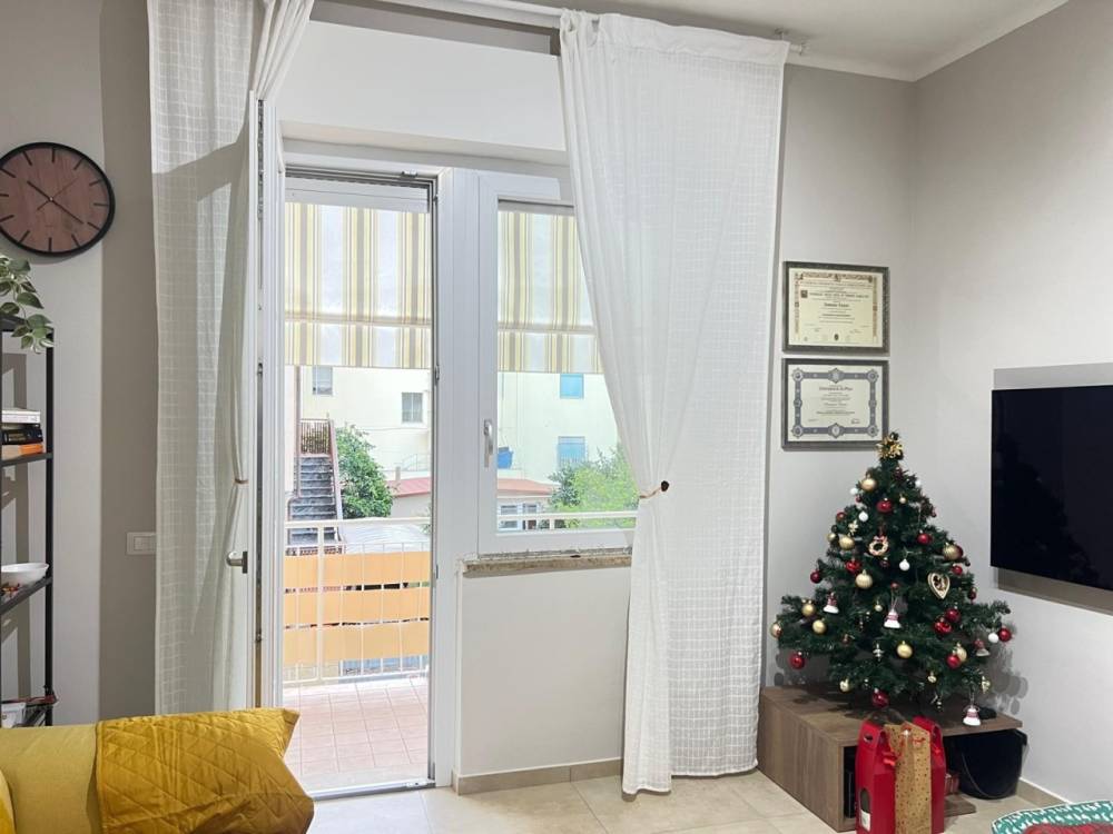 Luminosa zona giorno con angolo cottura e balcone affacciato su strada poco trafficata