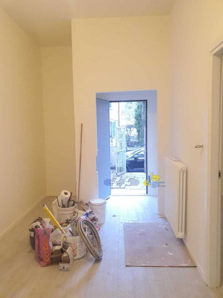 VIA SOLARI - vendesi elegante trilocale posto al piano rialzato di oltre 120 mq commerciali. L'appartamento, di nuova ristrutturazione, ha accesso indipendente ed è composto da uno spazioso ingresso comprendente un angolo molto funzionale che può essere chiuso e sfruttato da ripostiglio oppure da armadiatura appendiabiti e scarpiera, sul lato destro dell'ingresso troviamo la zona giorno composta da un salotto ed una pratica cucina in nicchia, la cui forma permette l'installazione di un mobile cucina ad angolo, qui è posizionata la caldaia; sempre su questo lato rispetto al vano d'ingresso è presente lo spazioso servizio igienico cieco con attacco per lavatrice; sul lato opposto sono presenti le due camere, una matrimoniale molto ampia che permette di poter comodamente creare un area studio al suo interno o avere il posto per una culla senza ingombrare la stanza, e la camera singola. Chicca dell'appartamento è il grande terrazzo di 70 mq, una rarità da trovare in una zona centrale della città, sul quale è possibile installare un gazebo per creare un salotto esterno con area relax e perchè no, un barbeque per i pranzi all'aria aperta. Termoautonomo e predisposto per la climatizzazione. L'appartamento è situato in una palazzina degli anni 70 in cui è stato deliberato il tinteggio della facciata principale per dare un nuovo sapore all'edificio. Vi è la possibilità di acquistare un posto auto all'interno del cortile condominiale, al prezzo di € 12.000 Tutti gli impianti sono dotati di certificazione di conformità. APE in fase di elaborazione. Richiesta € 245.000. Per informazioni Francesca 347 0919662.