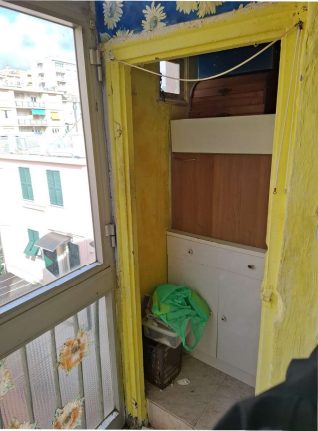 Piena proprietà di appartamento ad uso abitativo ubicato a Genova (GE), zona Sestri Ponente, Via Puccini, edificio 13, interno 10, posto al piano 4 di un edificio di 6 piani fuori terra, senza ascensore, composto da un ingresso, un soggiorno, una cucina, due camere, un servizio igienico, un poggiolo chiuso da una veranda in vetro e alluminio.