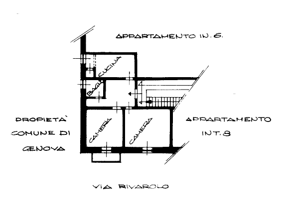 Piena ed intera proprietà dell'appartamento in Genova, identificato dall'interno 5 posto al secondo piano dello stabile contraddistinto con il civ. 29 di Via Rivarolo, di una superficie lorda pari a circa 76 mq, mentre quella netta calpestabile è pari a circa mq 59 oltre balcone di circa mq 2.