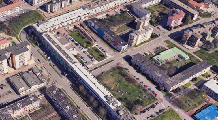 Unità al piano terra facente parte di un complesso immobiliare di edilizia economica e popolare in cui sono presenti altri negozi, appartamenti e garages.