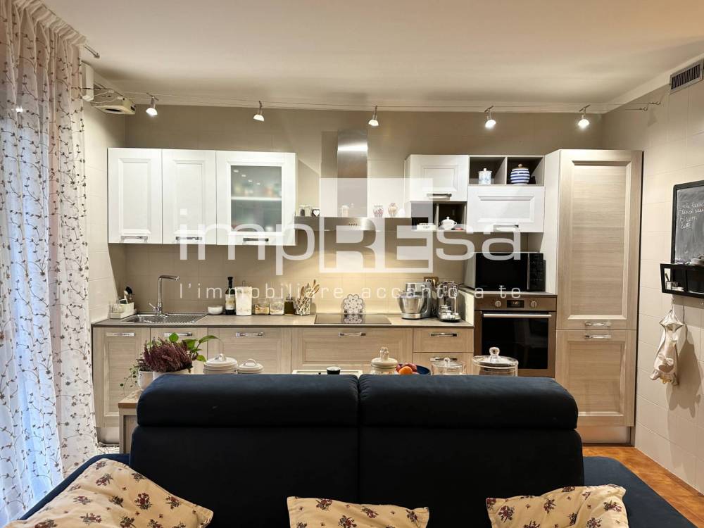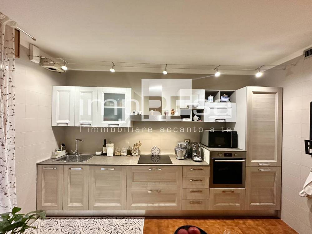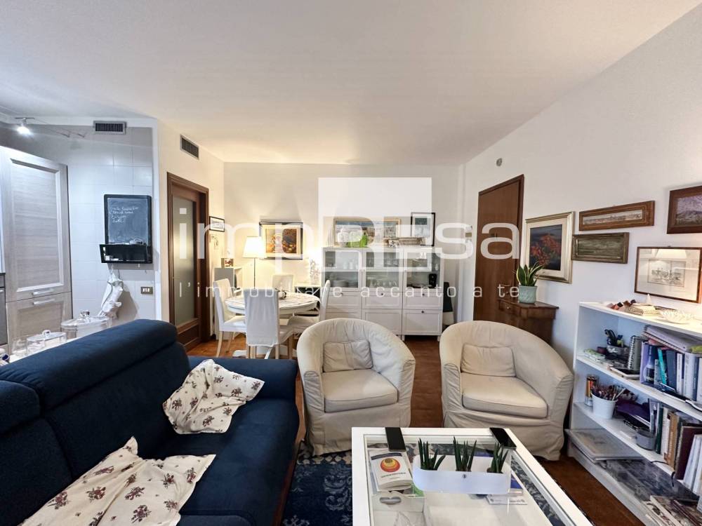 L'immobile è di mq. 60 circa, composto da ingresso, ampio salotto con cucina a vista e angolo pranzo con affaccio su terrazziono a Nord con tenda parasole esterna, lungo corrdoio completo di armadiatura a muro, bagno con vasca e camera matrimoniale.