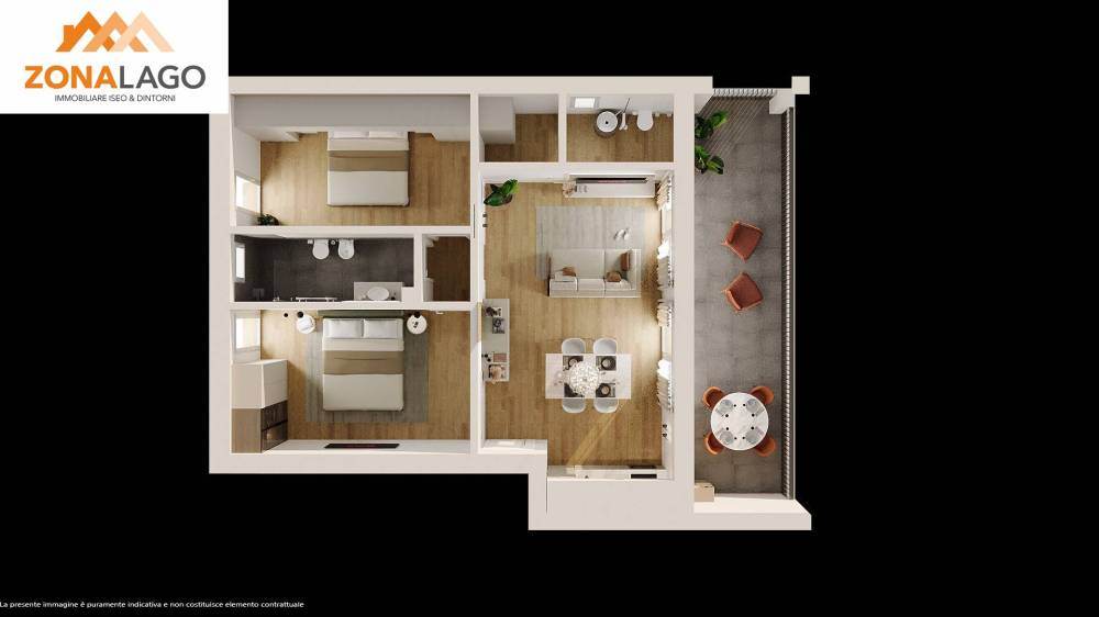 nuovo trilocale con doppio servizio posto al piano primo ed ultimo con terrazza vivibile, balcone ed ottima vista lago,
