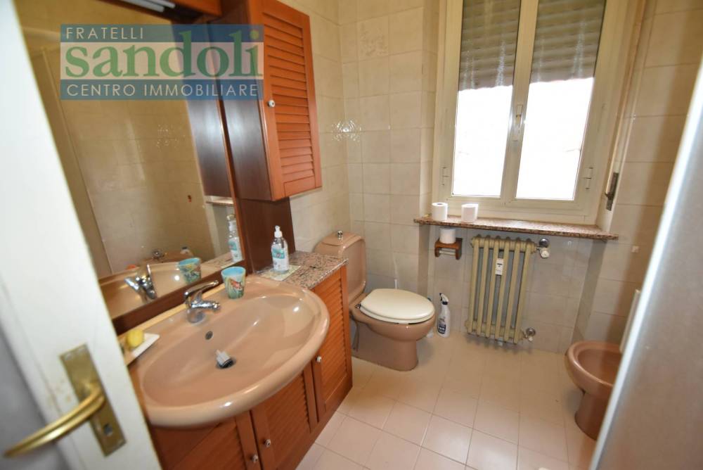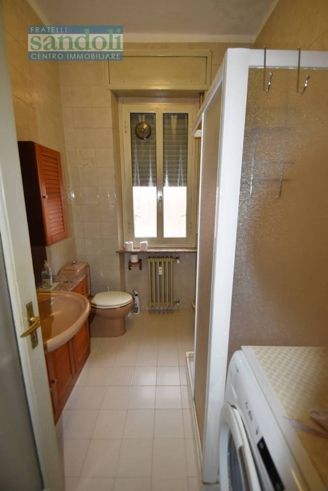 Il bagno, seppur di finiture datate, è dotato di tutti i comfort e di una comoda cabina doccia. L'appartamento è dotato di un impianto di riscaldamento a radiatori con contabilizzatore di calore, gestito da una caldaia a metano, che combinato con il sistema di aria condizionata, garantisce un'ottima efficienza energetica e un notevole risparmio sulle spese di riscaldamento.