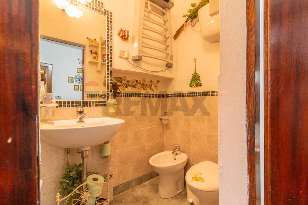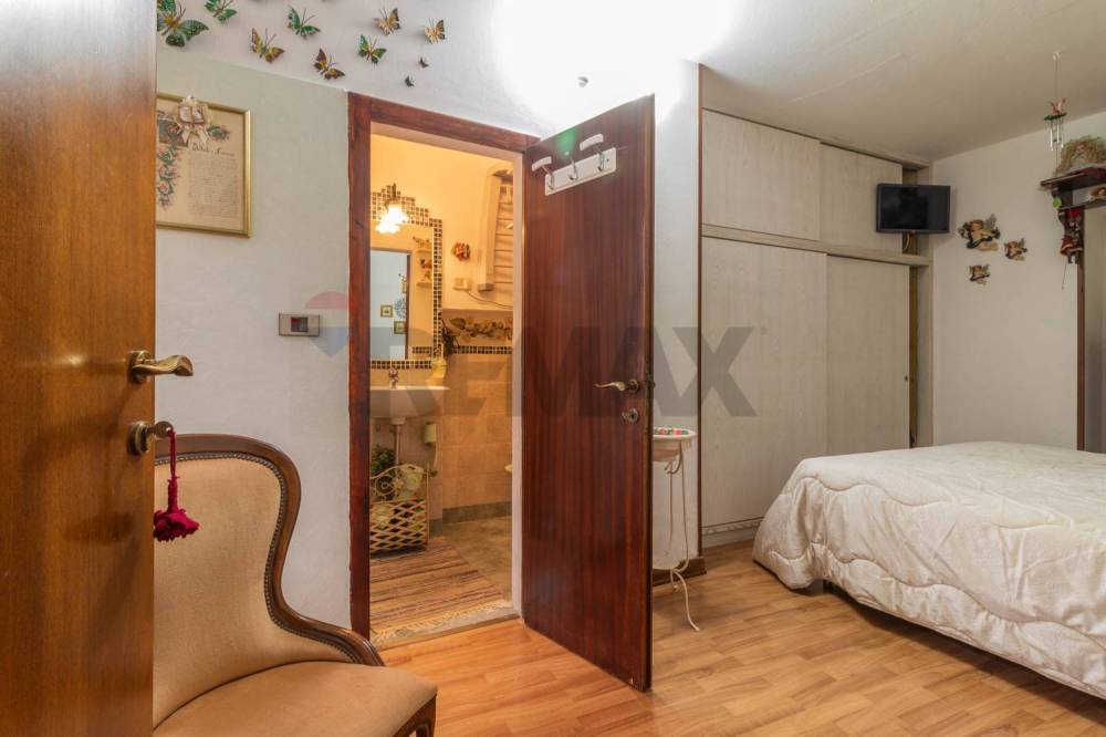 L'entrata presenta un disimpegno che da accesso ad una prima camera da letto dotata di servizio e due ampie stanze usate come cantina e ripostiglio.