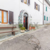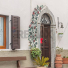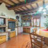 Il passaggio dalla cucina al soggiorno è caratterizzato da due archi rifiniti da mattoni e pietra, un affresco fatto a mano nella parete e un mosaico sul pavimento. Il soggiorno rifinito da lavori di pregio con predisposizione per riscaldamento a pellet crea un'atmosfera calda e accogliente.