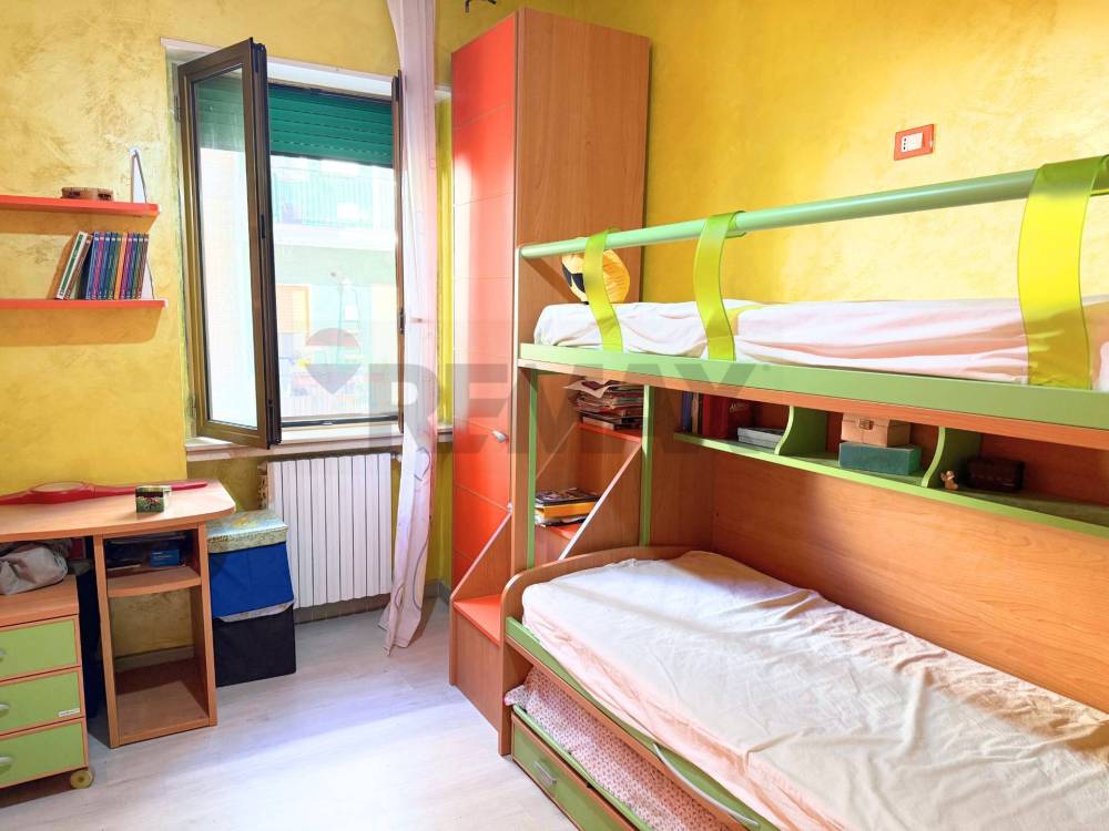 Proseguendo nella zona notte, un lungo disimpegno conduce al bagno, che, come la casa, è completamente ristrutturato, e poi ad una cameretta spaziosa, ideale per due bimbi o come studio ed infine ad unamabile camera da letto, dotata di balconcino con affaccio su via Goffredo Mameli.