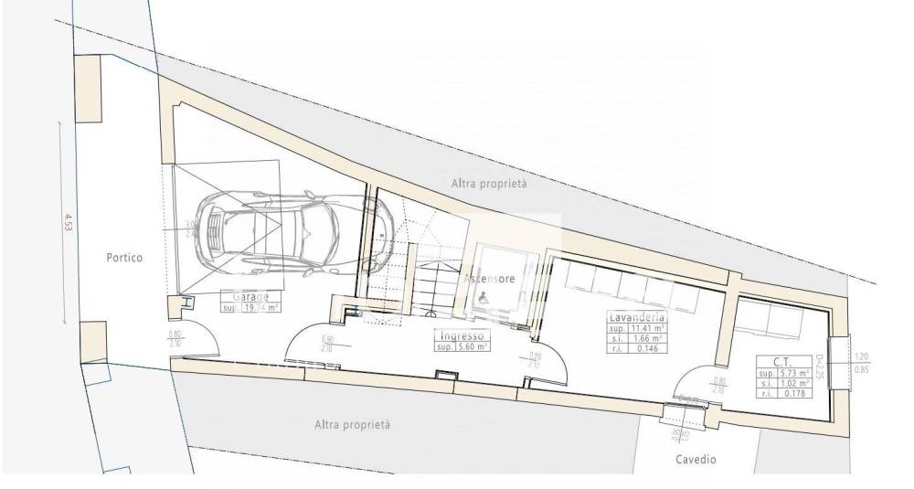 Piano Terra :garage singolo con basculante , lavanderia/stireria di quasi 12 mq , ripostiglio e CT