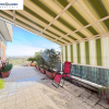Coperture: Tenda da sole motorizzata SOMFY di grandi dimensioni con faretti LED integrati, più due tende aggiuntive su zona sala e cucina.