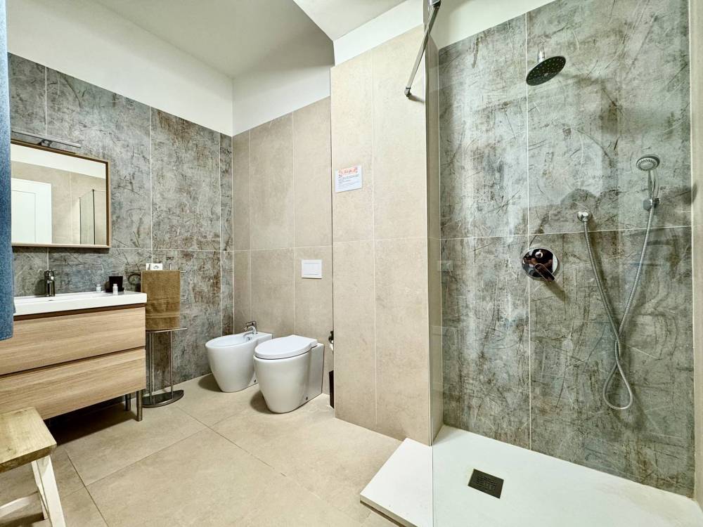 Proseguendo al terzo piano, si accede a due suite dal design elegante e moderno, entrambe con affaccio diretto sul mare. Queste suite sono state concepite per offrire un'esperienza di soggiorno di alto livello, combinando comfort e stile. Sullo stesso piano è presente uno spazio comune che ospita una cucina condivisa, progettata per momenti di convivialità e relax tra gli ospiti.
