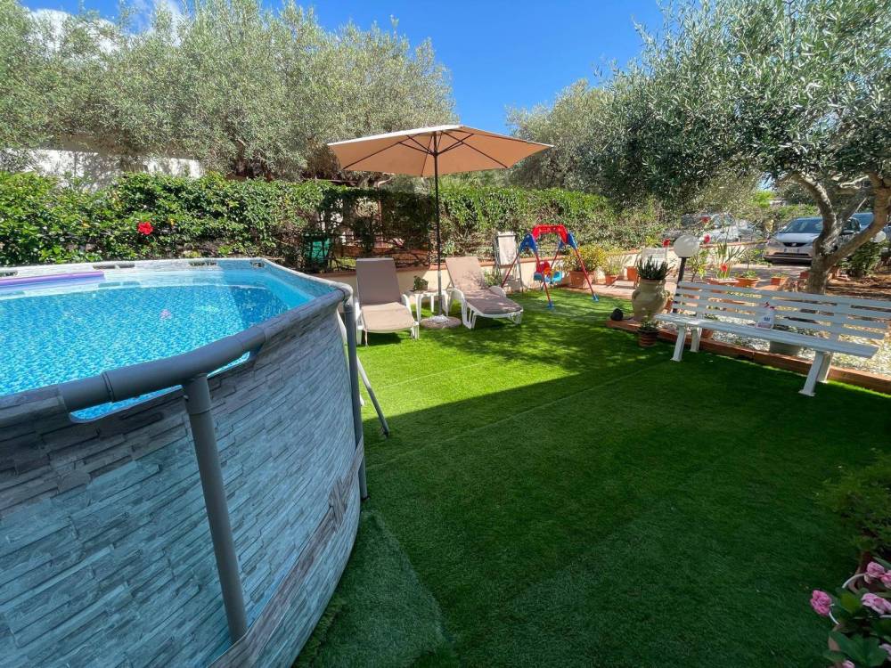 Il giardino è un vero angolo di paradiso, con alberi di ulivo, frutteti e piante ornamentali, creando un'atmosfera di naturalità e bellezza. Gli spazi esterni offrono anche la possibilità di creare un angolo con piscina e patio solarium, ideale per godere del sole siciliano in totale relax.