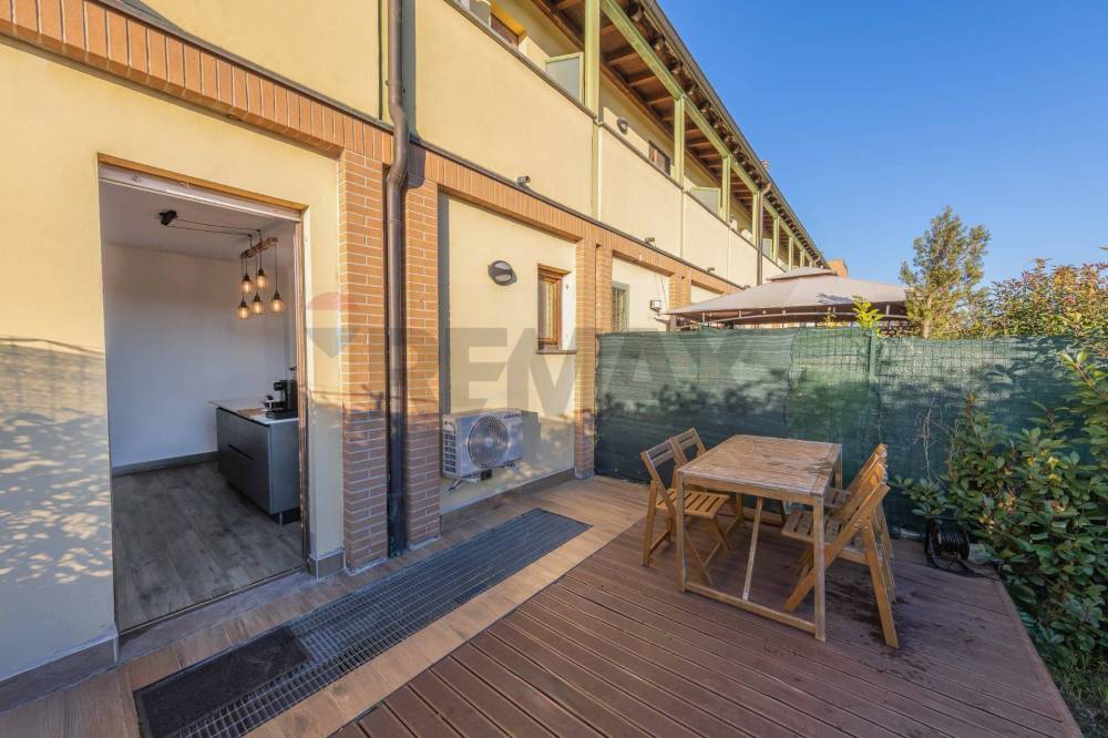 Allinterno del complesso proponiamo in vendita unelegante soluzione abitativa disposta su quattro livelli e sviluppata su una superficie complessiva di 150 mq, così composta: patio con ingresso indipendente, accesso alla zona living/pranzo, cucina abitabile con affaccio sul giardino privato di circa 30 mq., un'elegante scala collega il resto della casa; al primo piano, vi è la zona notte con due camere da letto, entrambe dotate di balcone coperto e un ampio bagno finestrato; in mansarda un ampio open space con travi a vista, ambiente ideale come studio o svago. Al piano interrato, ampia taverna, perfetta per momenti conviviali con amici e parenti, completa di pratico locale lavanderia/bagno. A completare la proprietà è presente unautorimessa privata al prezzo di 25.000.