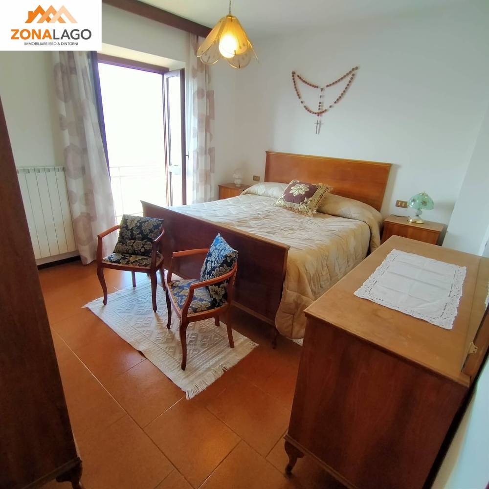 all'interno di una soleggiata abitazione indipendente, al piano superiore appartamento composto da balconata d'ingresso, tre locali, bagno e balcone con favolosa vista lago!!