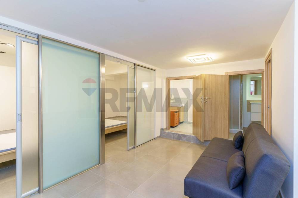 Limmobile, posto al piano primo sottostrada, è composto da soggiorno cucina open-space, due camere da letto, due bagni e lavanderia-ripostiglio.