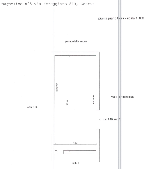 LOTTO 3 - BENE 3- 1/1 Diritto di proprietà magazzino ubicato a Genova (GE), Via Fereggiano, 81 rosso, piano terra. Locale ad uso magazzino, con ampio varco di ingresso situato in immobile ad un solo piano adiacente in parallelo al civ. 41 di via Fereggiano, avente accesso carrabile e pedonale tramite passaggio privato dal civico 81 rosso di via Fereggiano, superficie mq. 77,00.