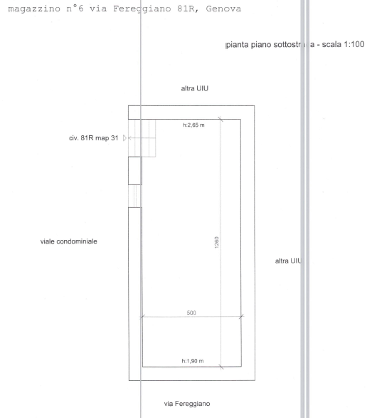 LOTTO 6 - BENE 6 - 1/1 Diritto di piena proprietà - Magazzino ubicato a Genova (GE) Via Fereggiano, piano sottostrada.