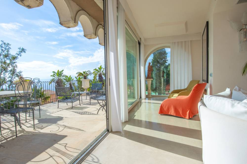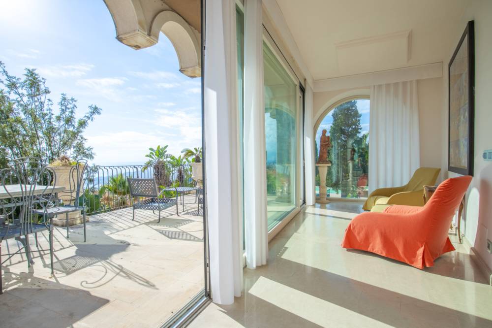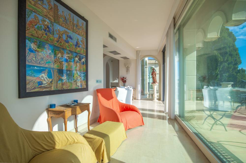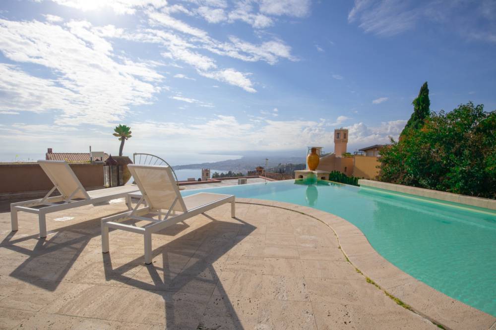 Villa storica di prestigio Taormina, Villa Degli Artisti In una posizione privilegiata e riservata, con una vista mozzafiato sul mare, sull’Etna e sul Teatro Antico, sorge Villa degli Artisti, una delle dimore storiche più affascinanti e rappresentative di Taormina. Costruita alla fine dell’Ottocento e accuratamente restaurata nell’ultimo decennio, la villa conserva intatto il fascino senza tempo delle residenze storiche siciliane, integrando al contempo comfort e tecnologie moderne. Fu dimora del celebre artista italiano Corrado Cagli, circostanza che ne accresce ulteriormente il valore culturale e simbolico. La proprietà si estende su una superficie complessiva di circa 900 mq, arricchita da oltre 150 mq di terrazze panoramiche, tutte con vista mare. Accanto alla villa principale si trovano una dependance di circa 200 mq, un tempo atelier dell’artista, un’area coperta ideale come palestra o spazio wellness, una piscina a sfioro con zona idromassaggio, un parcheggio privato per quattro auto e un parco di circa 1.200 mq, impreziosito da piante secolari, essenze autoctone, terrazzamenti e suggestive sculture in pietra. La villa principale si sviluppa su tre livelli, collegati da un’elegante scala interna in pietra di Modica, sovrastata da una copertura in vetro che diffonde luce naturale in tutti gli ambienti. Ogni piano è inoltre dotato di accessi indipendenti tramite scale e ingressi esterni, rendendo la proprietà estremamente versatile. Il livello principale accoglie un ampio e luminoso salone con camino e grandi vetrate che si aprono su una terrazza panoramica. Sullo stesso piano si trovano una raffinata zona pranzo con camino, anch’essa affacciata sul mare e sul Teatro Antico, una cucina funzionale con accesso diretto a una spaziosa terrazza ideale per pranzi all’aperto, oltre a due bagni. Il piano terra ospita due appartamenti indipendenti, ciascuno con accesso diretto alla propria terrazza panoramica: il primo composto da due camere da letto, cucina e ampia zona living; il secondo da una camera da letto, cucina e bagno. Questa configurazione rende la villa ideale anche per uso ricettivo di alto livello o per ospiti privati. Un ascensore interno collega tutti i livelli fino al piano superiore, dove si apre una magnifica terrazza panoramica con vista a 360° su Taormina, il mare e l’Etna. Su questo livello si trova anche l’ultima camera da letto della villa, realizzata con pareti in vetro e dotata di vasca idromassaggio, per un’esperienza abitativa unica e scenografica. Immersa nel giardino, la dependance offre un ampio soggiorno a doppia altezza con camino e grandi vetrate a tutta parete, una cucina con zona living e bagno al piano terra, e due camere da letto con bagno privato al livello superiore. Uno spazio perfetto per ospiti, staff o per un utilizzo indipendente. La proprietà gode di doppi accessi: un cancello pedonale conduce direttamente al centro storico attraverso una via parallela al Corso Umberto, permettendo di raggiungere il Duomo in pochi passi; l’accesso veicolare avviene invece tramite un elegante cancello elettrico in ferro battuto. Grazie alla sua posizione centralissima, Villa degli Artisti consente di vivere Taormina a piedi: negozi, ristoranti, eventi culturali e il celebre Teatro Greco sono raggiungibili in circa dieci minuti. La funivia per la baia di Mazzarò e Isola Bella è nelle immediate vicinanze. Lo svincolo autostradale dista solo 6 km e l’aeroporto internazionale di Catania è raggiungibile in circa 40 minuti. Questa proprietà rappresenta una opportunità rara e irripetibile: una residenza storica di grande prestigio, perfetta come dimora privata esclusiva, residenza di rappresentanza o investimento di alto profilo, in una delle località più iconiche e richieste del Mediterraneo. Per maggiori informazioni o per organizzare una visita privata, contattare Immobiliare Casa & Luxury in Sicily Real Estate Agency +39 0931 461760 +39 348 9897292 Codice di riferimento: Sicily4852