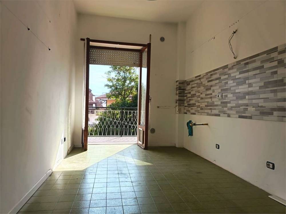 L'appartamento privo di arredamento dispone di un posto auto all'interno di un'ampia area condominiale.