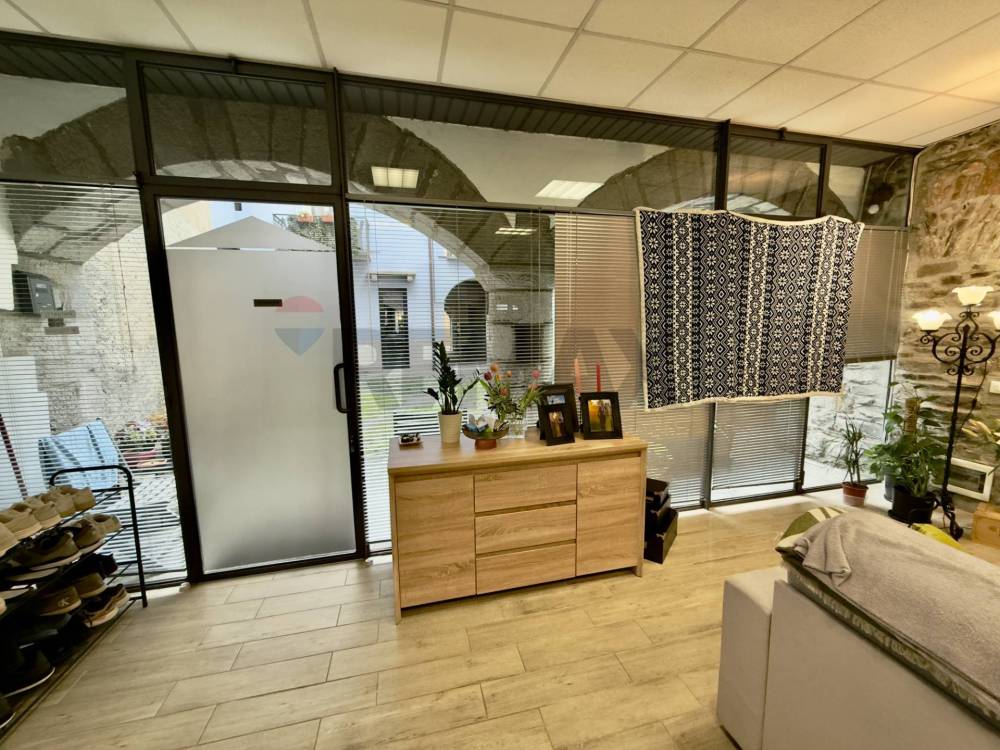 E composto da un unico ampio locale composto da zona giorno con angolo cottura/pranzo, dal soggiorno/TV e da unampia zona notte oltre che al bagno con doccia. Le due zone sono delimitate da un antico e originale pilastro che sorregge due arcate e che divide in modo funzionale lo spazio. Decisamente di effetto la parete con i sassi a vista con una nicchia incorniciata da pilastri e un architrave in sasso (sicuramente un antico passaggio) testimonianza della storicità dello stabile, così come limponente facciata in sasso caratterizzata da una maestosa colonna che sorregge due archi a tutto sesto ribassato. Questi antichi elementi, con gli infissi moderni a tutta parete creano un contrasto armonioso tra antico e contemporaneo. Le ampie vetrate assicurano poi ottima luminosità e continuità tra spazi interni ed esterni.