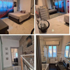 Primo Piano (Zona Giorno): Ampio e luminoso living composto da soggiorno, sala da pranzo e moderna cucina con penisola. L'ambiente è servito da balcone e climatizzazione.