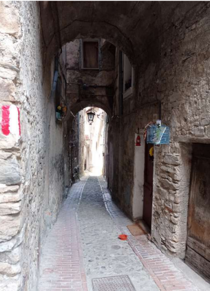 Appartamento che si affaccia sulla strada pedonale, via Vittorio Emanuele, si sviluppa su cinque livelli; seminterrato, piano terra, piano primo, secondo, e terzo (sottotetto) collegati da una scala interna posta dietro il muro della facciata su strada.