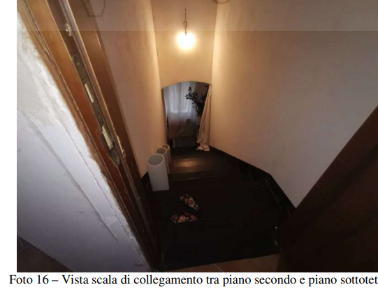 L'appartamento è composto di tre piani: piano primo, piano secondo e piano sottotetto con accesso diretto dalla strada e scala interna di collegamento ai piani.