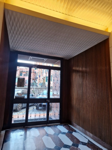 L'accesso avviene dal portone posto sull'ampia area privata laterale a Via Canevari protetta da sbarra per l'accesso veicolare.