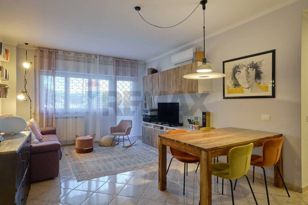L'immobile si presenta in ottimo stato interno e si compone di soggiorno, cucina abitabile, tre camere da letto, disimpegno, doppi servizi e balcone.