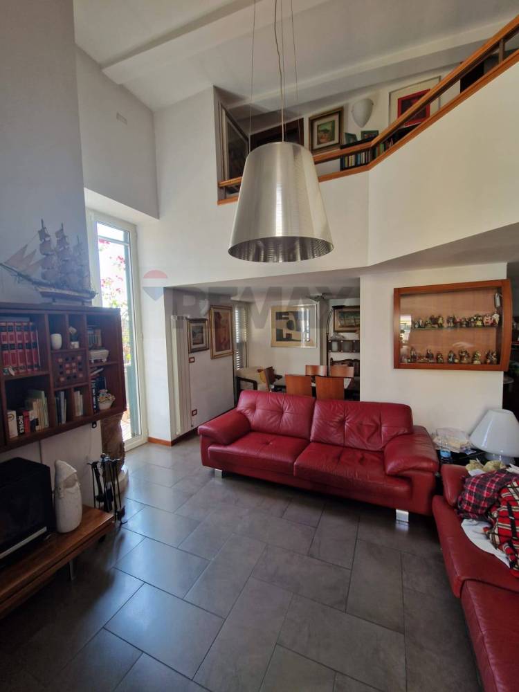 Lappartamento si compone: ingresso disimpegno, cucina abitabile, ampio salone, ampio balcone con vista mare, tre camera da letto, bagno, soppalco con camera, studio e bagno.