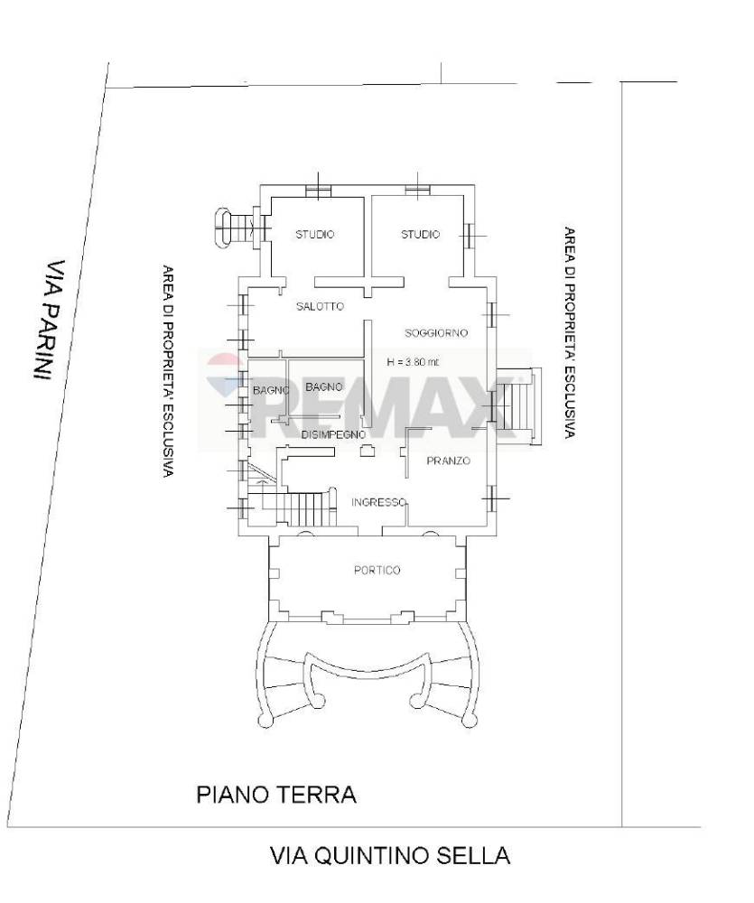 La villa è accessibile da un ingresso pedonale situato su Via Quintino Sella e da un accesso carrabile su Via Parini. Inoltre, il piano terra offre ben tre ingressi indipendenti, conferendo alla struttura una versatilità che la rende adatta sia per due nuclei famigliari distinti sia per utilizzi professionali come uffici o studi di rappresentanza.