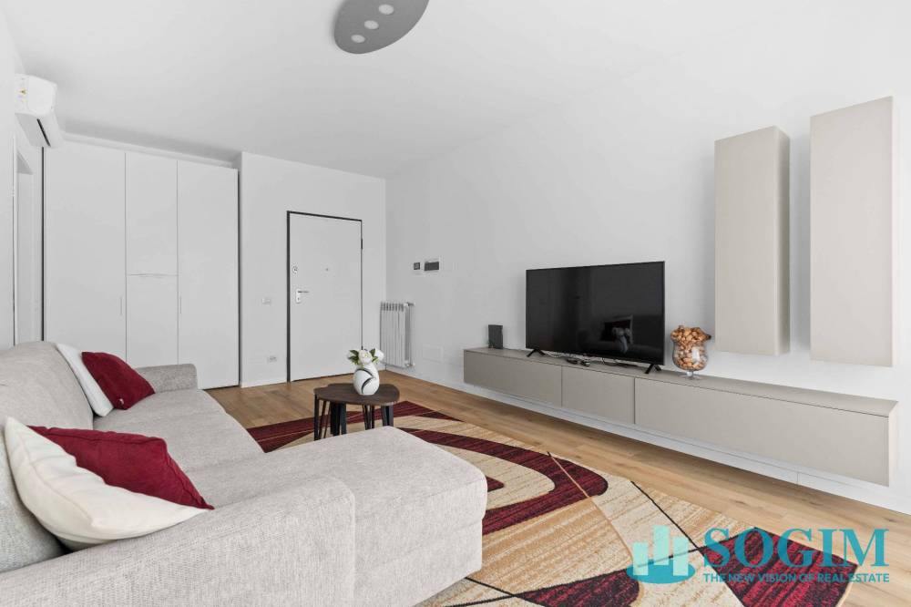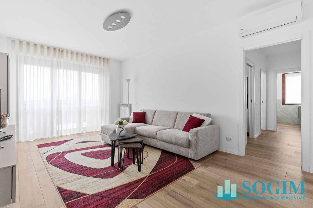 L'appartamento è dotato di infissi in legno con doppio vetro, pavimentazione in gres effetto parquet in tutti i locali, impianto di condizionamento e di riscaldamento autonomo.