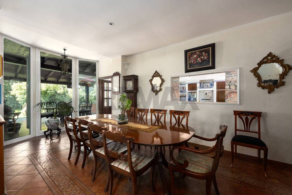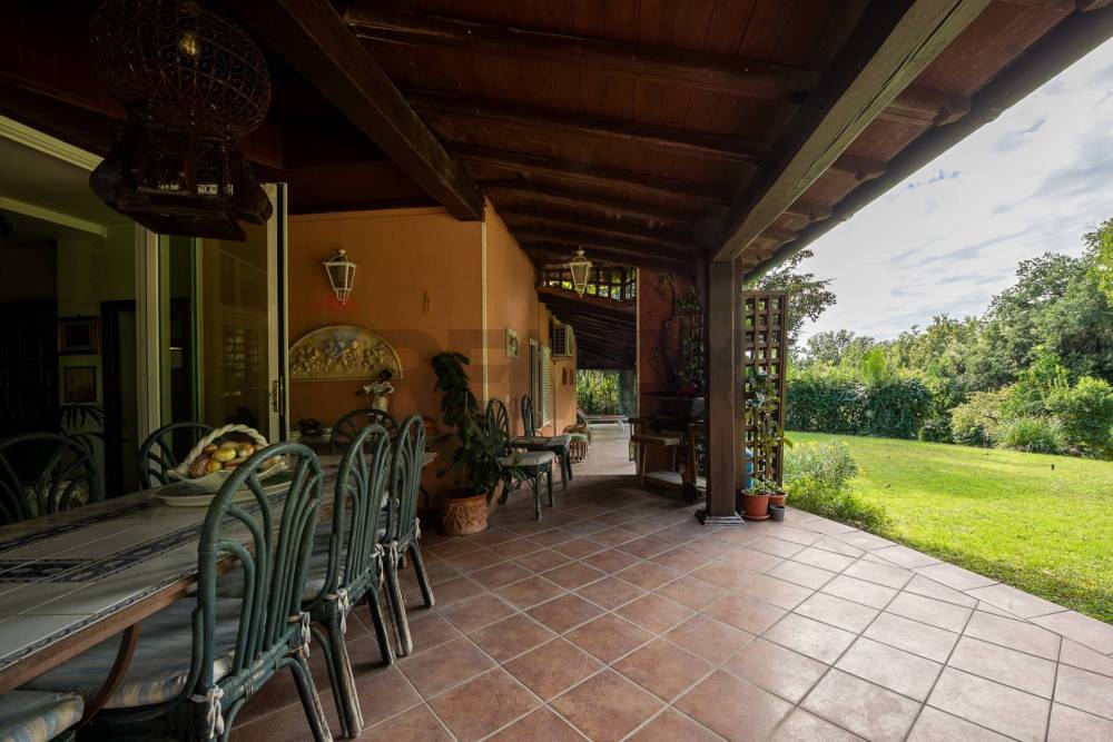 L'immobile presenta un doppio ingresso e ha una metratura interna di circa 300 mq distribuiti su due livelli, completata da un giardino con bosco di proprietà e un' ampia veranda con accesso diretto ad esso.