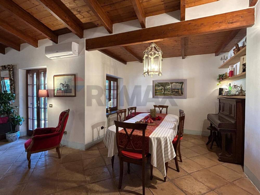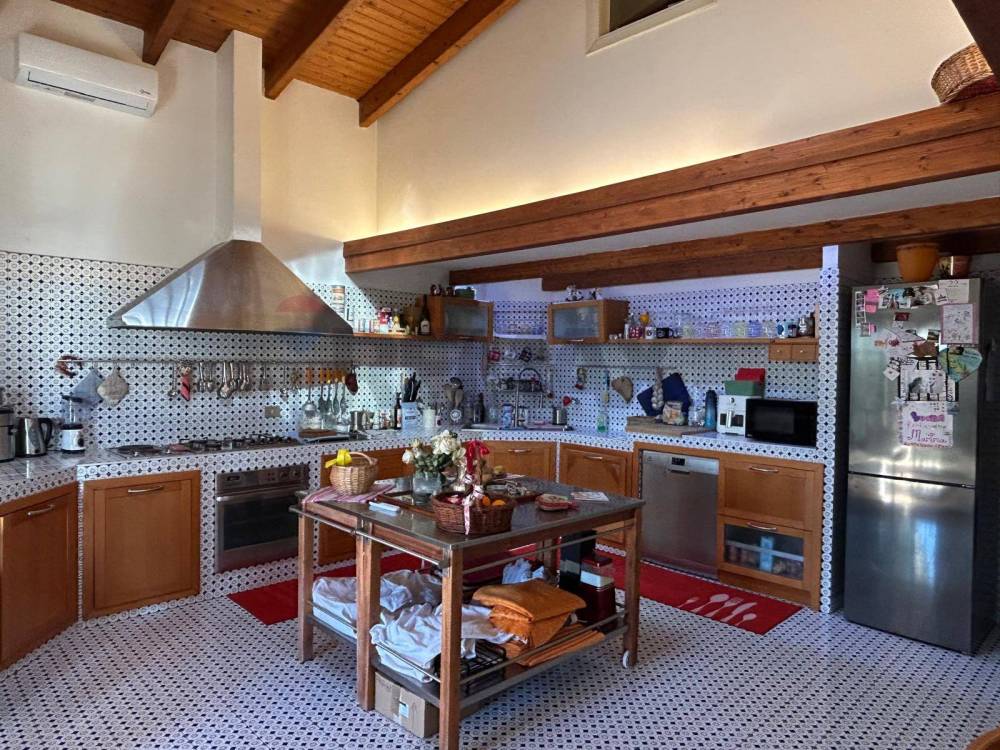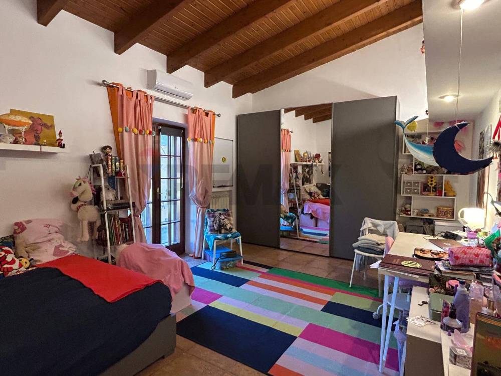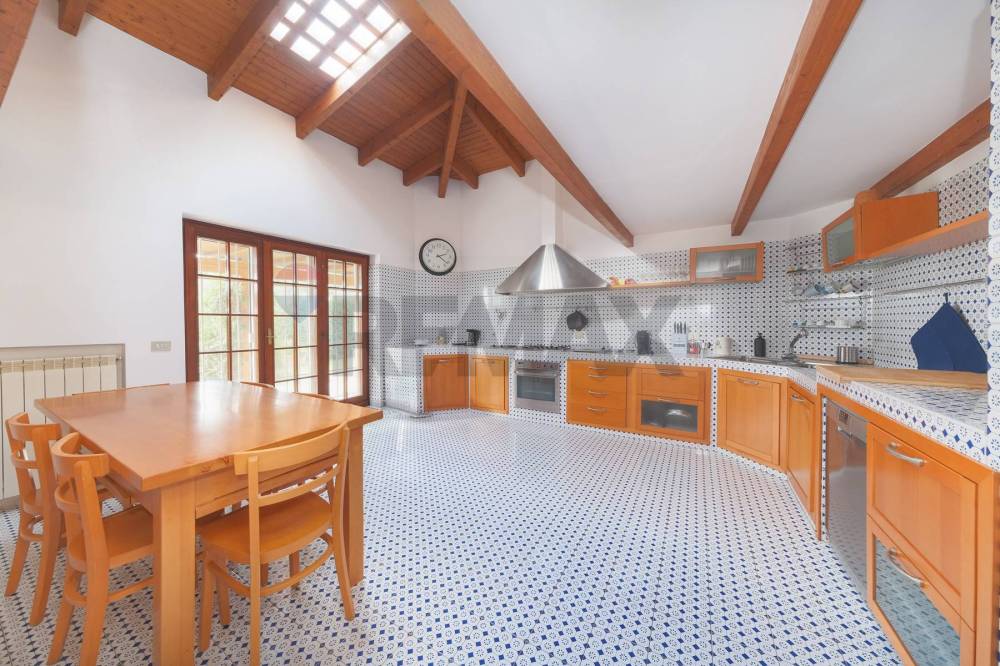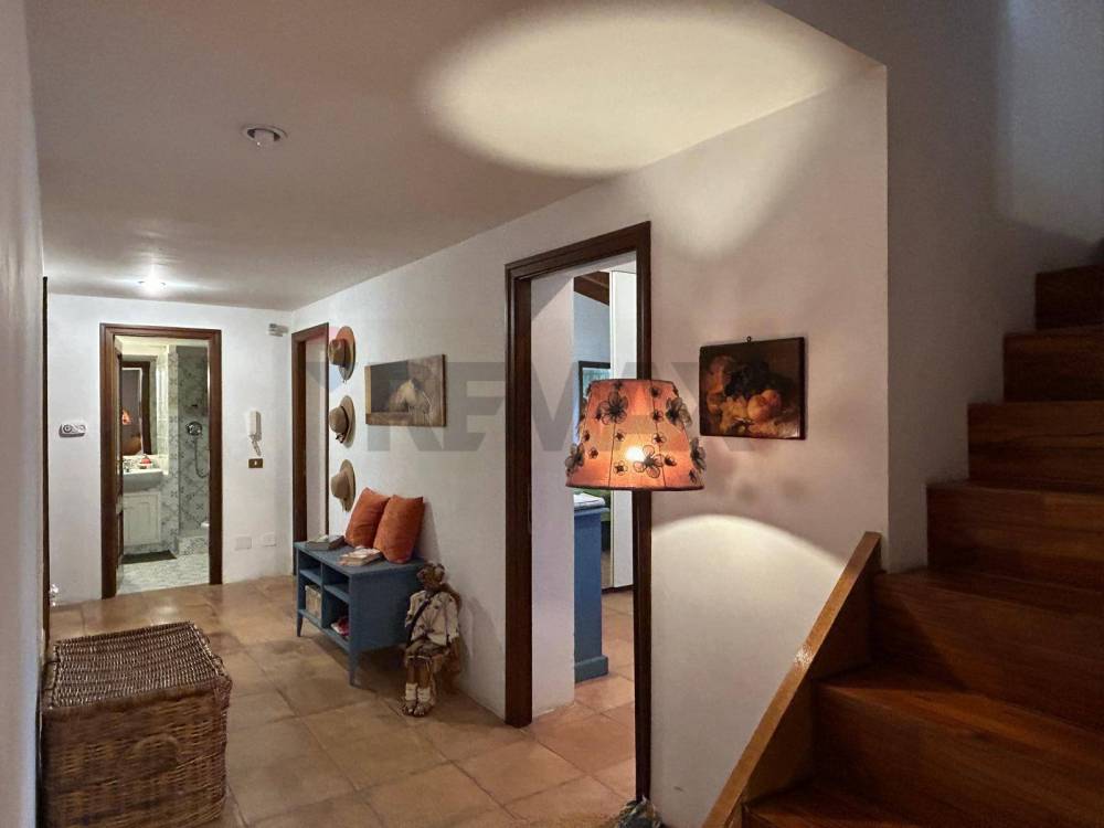 un comodo ingresso con vetrate e armadio a muro, salone con camino, attraverso due gradini si accede alla cucina abitabile e ai due bagni; la zona notte è costituita da una camere da letto matrimoniale con caminetto e una seconda camera da letto; un ripostiglio con accesso dall'esterno.