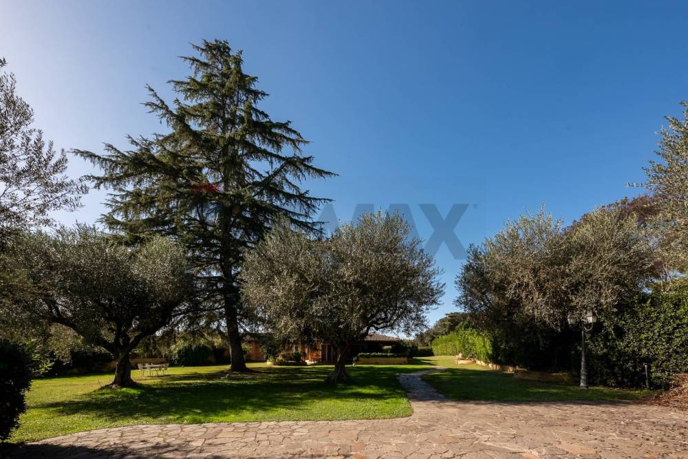 Il giardino, costituito da alberi ad alto fusto, ulivi, alberi da frutto e piante di vario tipo, circonda l'immobile; nella zona antistante è presente una struttura esterna in muratura con barbecue e forno, in quella retrostante sono presenti un'area gioco per bambini, una vasca idromassaggio da esterno, un lato della casa è pavimentato e ospita una tettoia spaziosa (50 mq coperti).