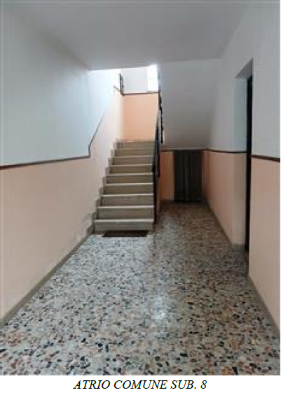 Appartamento interno 1 al piano primo composto da ingresso e corridoio di distribuzione centrale, cucina abitabile, tre camere, bagno, balcone, vano accessorio con accesso indipendente dal pianerottolo per complessivi mq. 100, nonchè, al piano terreno, locale magazzino con accesso diretto dalla strada avente superficie di mq. 49 e adiacente corte esterna esclusiva di mq. 65.